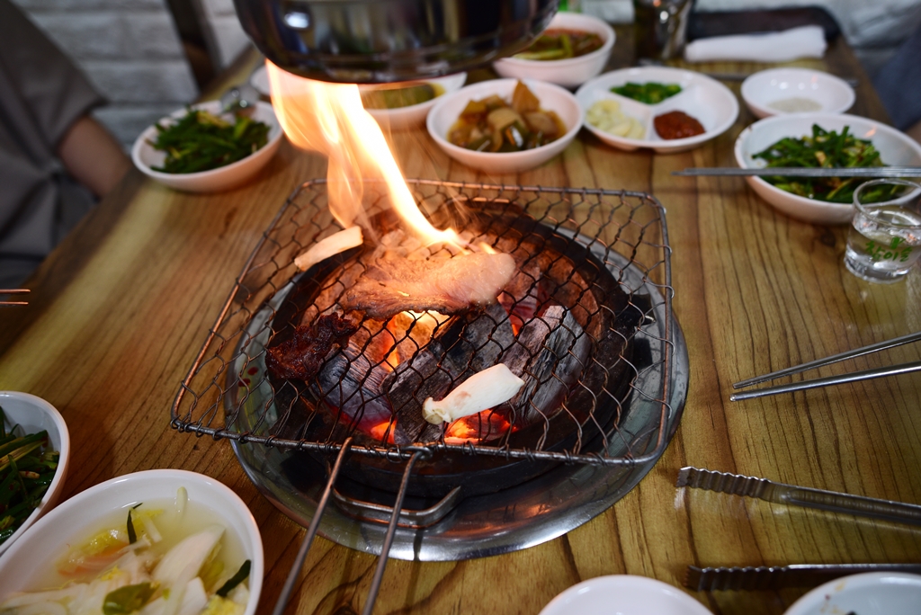 숯불을 사진과 같은 아궁이에서 준비하시더군요. 참숯이 활활 타오르네요.