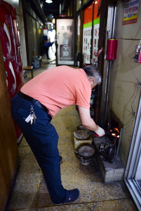 화재도 있었고 안전하게 숯불을 준비하시는지 주인 아저씨가 숯불을 준비하는 모습을 봤어요.